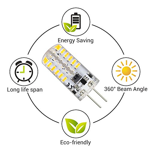 - ✔ High Performance - G4 LED light bulb has 3000-3500K color temperature, 220lm,360 degrees lighting angle, with copper bracket and gold-line packaging LEDs; silicone material coated, anti-pressure, heat and impact resistant.Enjoy high color rendering index and no flickering, No UV or IR radiation. Made from high quality materials and built to last for up to 10000 hours.