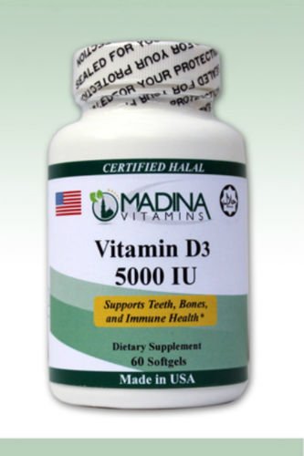 -. Binding : Health and Beauty -. Brand : Madina Vitamins -. EAN : 0013964701654 -. Feature : Support teeth, bone and immune health / Contains Calcium and Phosphate / Good for bone health / Regulates blood concentrations / 2 Months Supply -. IsAdultProduct : 0 -. Label : Madina Vitamins -. Manufacturer : Madina Vitamins -. Model : No Model -. MPN : No MPN -. PackageQuantity : 1 -. PartNumber : No MPN -. ProductGroup : Health and Beauty -. ProductTypeName : HEALTH_PERSONAL_CARE -. Publisher : Madina Vitamins -. Studio : Madina Vitamins -. Title : Madina Vitamins - Halal Vitamin D3 5000 IU (60 Softgels - Daily Supplement) -. UPC : 013964701654