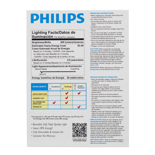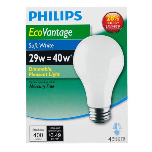 Philips 426007 29-watt A19 Dimmable Light Bulb, Soft White , 4-Pack