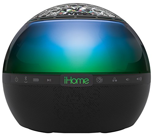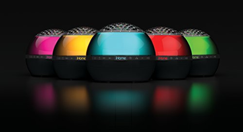 Bring the party wherever you go with iBT175 color changing rechargeable Bluetooth speaker. The iBT175 has two audio sources: Bluetooth wireless audio streaming from your Bluetooth-enabled device, or direct audio via the aux-in jack. Built-in mic, digital voice echo cancellation and answer/end controls make speakerphone use a pleasure. 3 Works with free Melody voice powered personal music assistant app to play music from Spotify, iHeartRadio and more. 60° sound with four speakers fills the space with sound. 3 passive subwoofers for enhanced bass. Five color changing modes with multiple colors at the same time for fun, fabulous color effects. Party Mode button gets the party started instantly. Download the free iHome Enhance App to set alarms and change color modes via Bluetooth.Feature