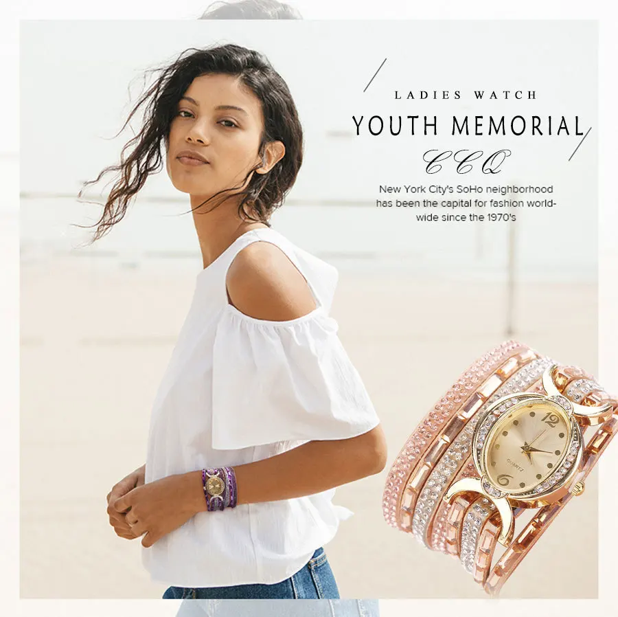 | [해외] 2017 CCQ 브랜드 패션 골드 크리스탈 타원형 다이얼 드레스 팔찌 시계 캐주얼 여성 광장 다이아몬드 럭셔리 여성 시계 시계 핫 |
