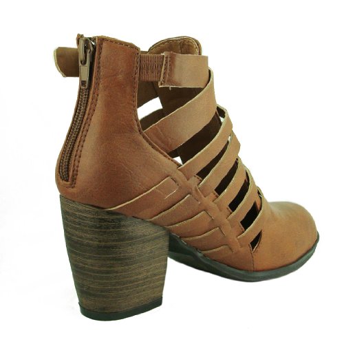 (Qupid)/Men's/Lace-Ups/DIRECT FROM USA/Qupid Women's Maze29 Cognac Leatherette s trappy Round Toe Ankle Bootie 8.5 M US