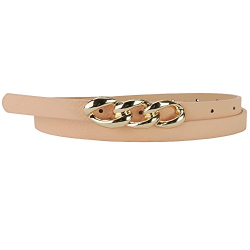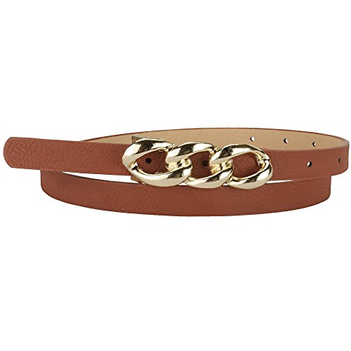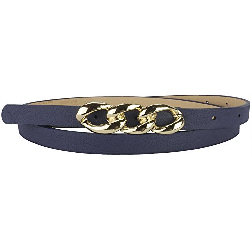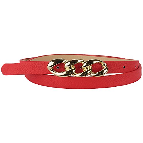 -. Binding : Apparel -. Brand : Buckles -. Department : womens -. Feature : 100% Genuine Leather / Available in 8 colors / Polished Gold Chain Buckle / Fashion belt for dresses / Belt size length is (Tip to Tip 43") Adjustable to fit waist between 31"-42" Height is 0.5" -. ProductGroup : Apparel -. ProductTypeName : ACCESSORY -. Size : One Size -. Title : Leather Belt with Design Buckle