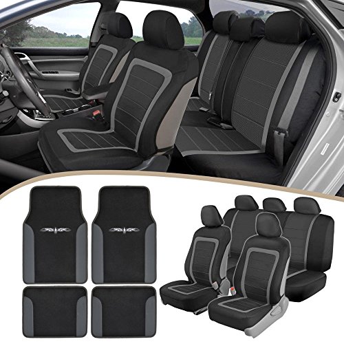 All New Sport/Luxury Design - Black & Gray Charcoal w/ Mesh Texture Panels. Installation has never been easier! Front seats slip on with a simple round-the-back buckle. Included Mats: Flexible and Tough - FlexTough series mats are designed to provide maximum protection. The uniquely constructed linear and diagonal ridges are placed strategically to maximize the dirt trapping capabilities of the mat. Made from only the highest quality polymers, Motor Trend Mats are Odorless and Non-Toxic. Trimmable for Extra Customization.Feature