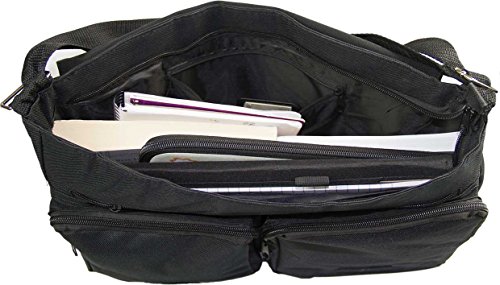 -. Feature : measures 15.75" x 11.25" x 2.75" purse measures 5" x 3" x 1/8" / Messenger bag Book Bag School Bag offers plenty of space to store all your school or work supplies / can fit items such as Textbooks, folders, notebooks, calculator, lunch, cell phone, mp3 player etc. / holds up to a 14.5" laptop/notebook computer (Laptop Sleeve sold separately), power cord, and mouse / Adjustable straps slings easily across the shoulder hassle free.