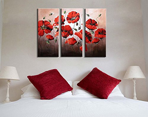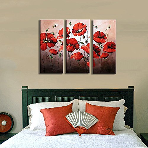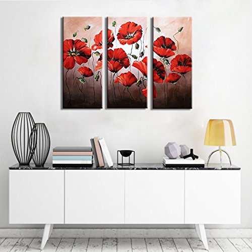 -. Binding : Kitchen -. Brand : Noah Art -. Feature : This flowers canvas wall art is a 100% hand painted oil painting on canvas. Not canvas P.R.Int or poster on paper. It is perfect artwork for wall decoration / Each Painting is gallery wrapped(painted all around) and stretched with inner wooden frame. Each Panel is plastic wrapped firstly, then, packed in a carton box P.R.Inted our brand "Noah Art". This wall art painting is ready to hang. The hanging wire is fixed on the back of each painting / The real painting would be slightly different from the photos displayed here for the photograph and monitor reasons. Thanks for your understanding in advance / 100% satisfaction is guaranteed by our Money-Back policy. Pls buy this oil painting flowers with confidence / Pls check carefully about the painting size to make sure that it is fit for your room before adding to the cart -. IsAutographed : 0 -. Label : Noah Art Gallery -. Manufacturer : Noah Art Gallery -. Model : AZH3008P -. ProductGroup : Home -. ProductTypeName : HOME -. Publisher : Noah Art Gallery -. Studio : Noah Art Gallery -. Title : Noah Art-Contemporary Flowers Wall art, Red SP.R.Ing Flowers Pictures 100% Hand Painted Modern Flower Oil Paintings On Canvas, 3 Panel Framed Floral Artwork for Bedroom Wall Decor
