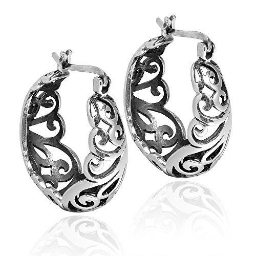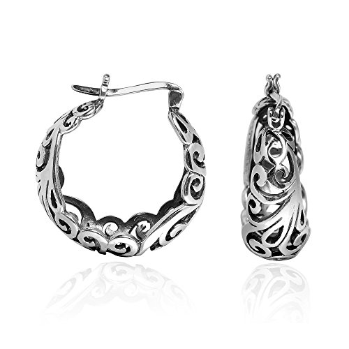 These elegant sterling stilver .925 earrings were handcrafted in a northern Thailand artisan workshop. The basket style earrings feature graceful swirls that add to the charm of this design. Classic yet modern, these earrings go great for formal or casual wear. PLEASE NOTE: The handcrafted nature of this product will produce minor differences in design, sizing and weight. Variations will occur from piece to piece, measurements may vary slightly.AERAVIDA works directly with gifted and talented Artisans from all over the world. At the core of our philosophy is fair trade and fostering a sustainable future for our Artisans.