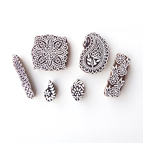 -. Title : Square and Paisley Elegant Motif Block P.R.Int Wood Stamps (Set of 6)