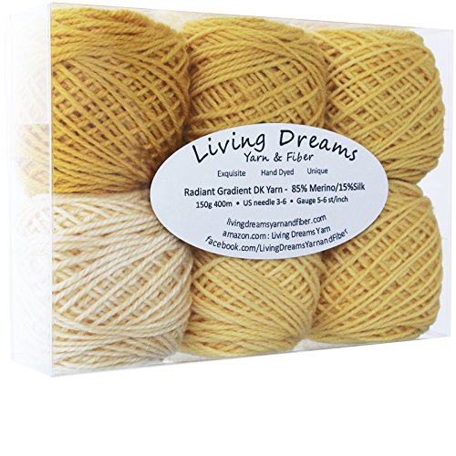 Living Dreams RADIANT GRADIENT DK YARN. Super Soft Merino Silk. USA Hand Dyed: Buttercups
