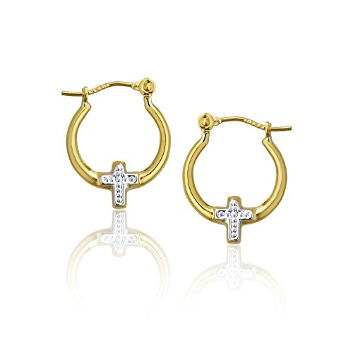 14K Gold Yellow & White Cross Hoop Earrings