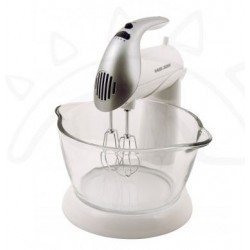 THIS ITEM ONLY WORK IN 220/240 VOLT COUNTRY. 1. 3.5L glass bowl with spout-shaped handles 2. 3.5L plastic bowl with spout-shaped handles 3. 5-speed switch 4. Eject (expulsor) button 5. Handle 6. Release (de liberación) button 7. Stand 8. Wire beaters (2) 9. Dough hooks (2)Feature