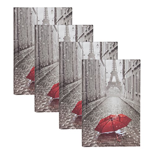 DesignOvation Paris with Red Umbrella Photo Album, Holds 300 4x6 Photos, Set of 4