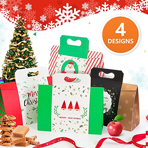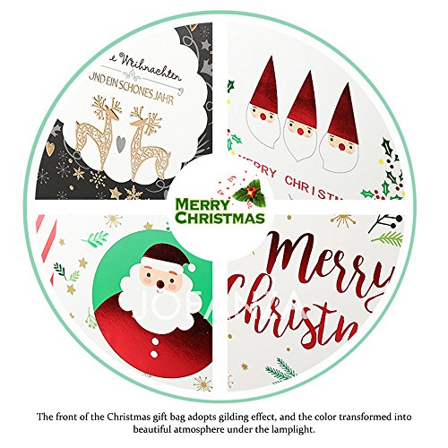 - ※CHRISTMAS THEME COLOR DESIGNS: Our Christmas gift bags have bright color and festive atmosphere, reasonable color matching. 4 newest designs: beautiful leaves snowflake Santa and gold deer print gift bags with handles.