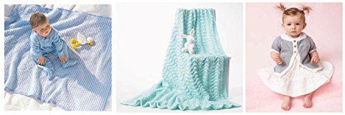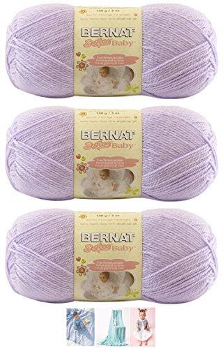 Bundle includes 3 skeins of Bernat Softee Baby in Lilac.Three patterns included are My Favorite Blanket to Knit, Knit Baby Blanket and Top Down Cardigan.