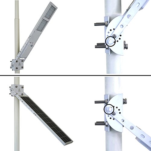 - Adjustable tilt mounting bracket with locking screw to fix solar panel position for optimum sunlight exposure during seasonal changes.