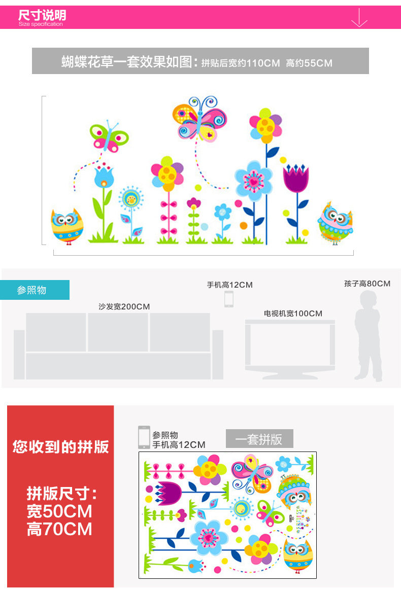Brand: small Aiai Wall Stickers Type: waterproof wall stickers Material: environmental protection PVC, the back with plastic, removable Style: simple and modern Pattern: Cartoon animation Pricing Unit: set Wall Sticker Style: Plane Wall Stickers size: detailed dimensions refer to the effect of Image (unit: cm) Sizes, "you receive the goods and typesetting" size and "collage after size reference" Our tile size for reference only, you can combine according to room size freedom