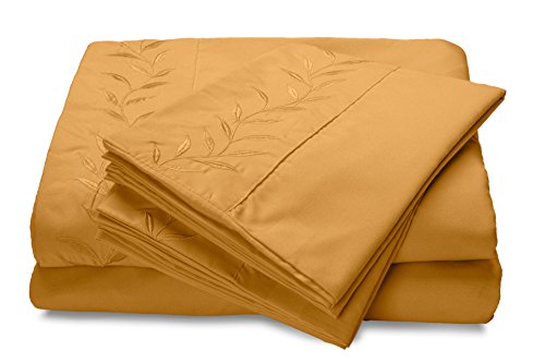Reversifi - Embroidered Sheet Set - 18 Colors Available - Queen Size - AmberGold