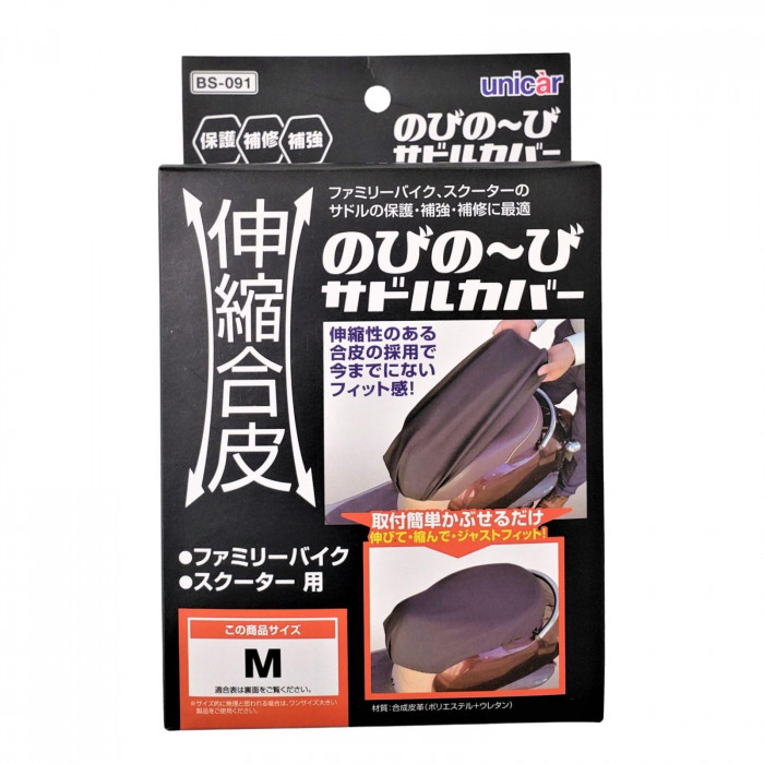 バイクやスクーターのサドルの保護・補強・補修に。伸縮性のある合皮でぴったりフィットするサドルカバーです。
