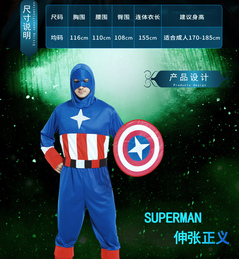 Adult men size fits all, leotard long 155cm, bust 116cm, waist 110cm, Hip 108cm, suitable for adult height around 170-185cm