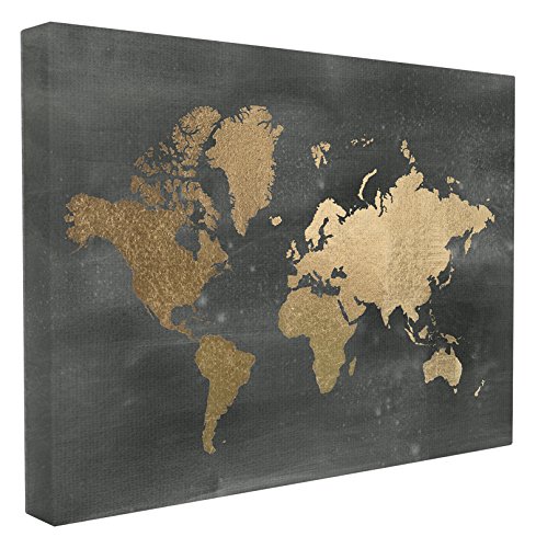 Stupell Home Décor Black and Gold World Map Oversized Stretched Canvas Wall Art, 24 x 1.5 x 30, Proudly Made in USA