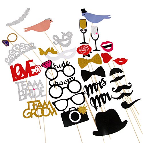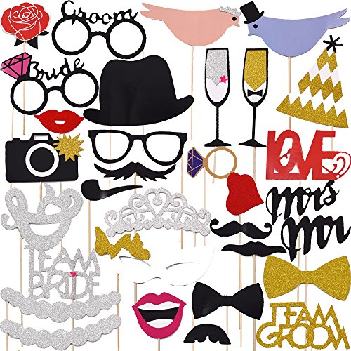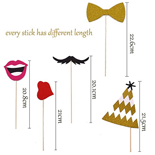 Photo Booth Props 31 Pcs Funny Cute DIY Kits Face Decor For Wedding Birthday Parties Dress-up Accessories Mustache, Hats, Glasses, Lips with wooden sticks by LONGBLE