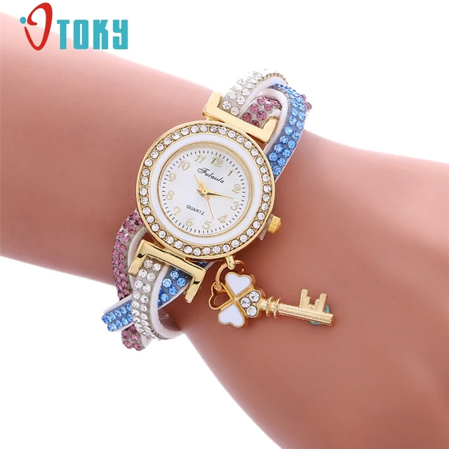 | [해외] OTOKY 팔찌 빈티지 여성 손목 시계 주위에 랩 패션 자물쇠 다이아몬드 가죽 드레스 시계 Relogio #30 선물 1 개 |