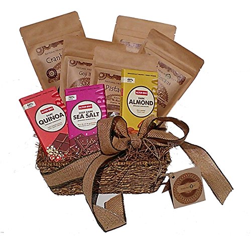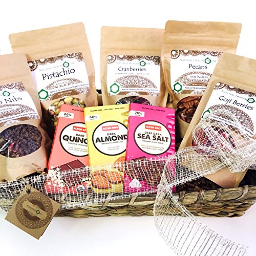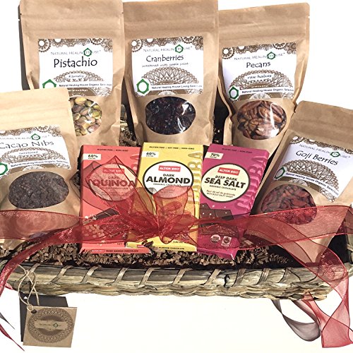 -. Feature : All Organic Gluten-Free ingredients Vegan No soy, sugars, dairy No cholesterol No preservatives / Finest living organic Superfoods: Goji Berries, Pistachios, Mulberries, Hazelnuts, Cranberries... / Occasions: Get Well, New Baby, Earth Day, Anniversary, Holidays, Christmas / Rich in Antioxidants Organic Raw Nuts and Berries / Organic Fair Trade Vegan Chocolate that will lift any Spirit!