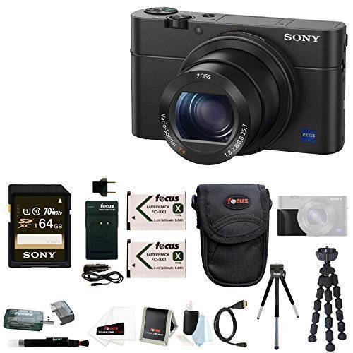 Sony Cyber-shot DSC-RX100 IV Digital Camera + Sony 64GB SDXC UHS-1 Memory Card + Focus Camera Accessory Bundle for Large Point and Shoot Digital Cameras