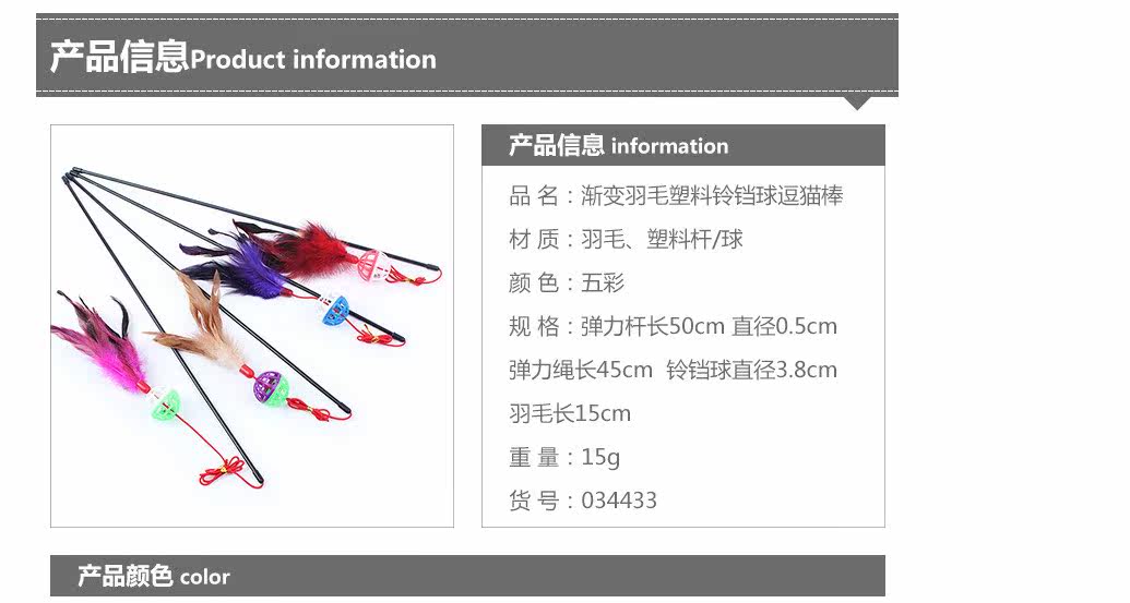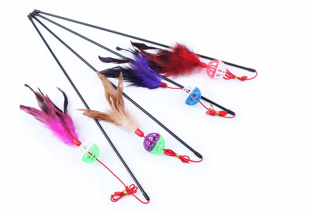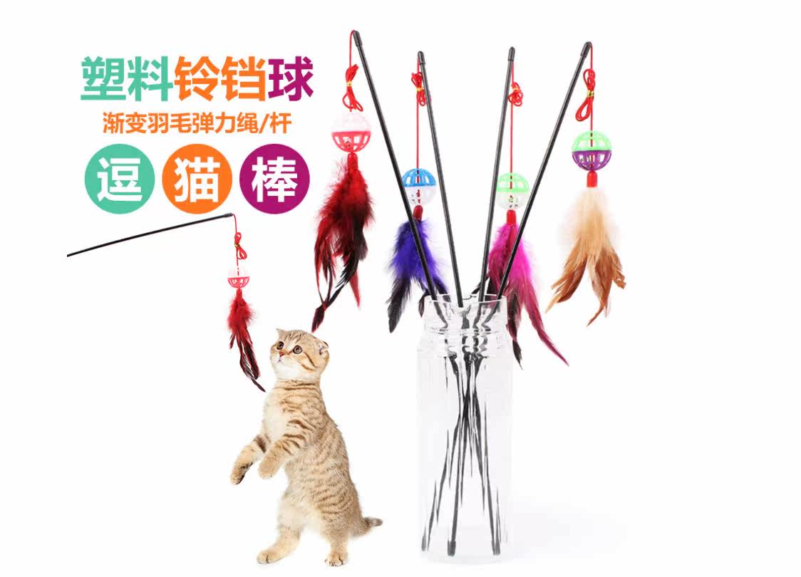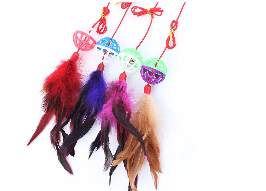 Specifications: elastic rod length 50cm, diameter 0.5cm, elastic rope length 45cm, bell ball diameter 3.8cm, feather length 15cm,