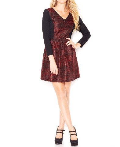 Kensie Womens Printed V Neck Long Sleeve Dress