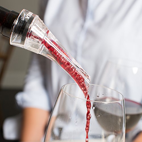 SAVE TIME & MONEY - MAKE CHEAPER BOTTLES OF WINE TASTE MORE EXPENSIVE IN SECONDS & NO NEED TO LET YOUR WINE BREATHE FOR HOURS: The finest 2 in 1 wine aerator and pourer has a unique built-in dual vent air intake chamber, drawing in air as you pour, Improving the taste of any bottle of wine. Our reviews state that it 'Made cheap wine taste significantly better'.