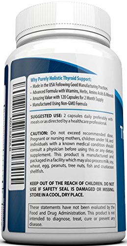 ✔ 100% PEACE OF MIND WITH USA MADE THYROID SUPPORT SUPPLEMENT: No need to risk your health with cheap imported supplements. Purely Holistic Thyroid supplement is produced right here in the USA. Our Thyroid Support is a non GMO formula. All our products are manufactured adhering to Good Manufacturing Practices (GMPs) giving you 100% peace of mind.