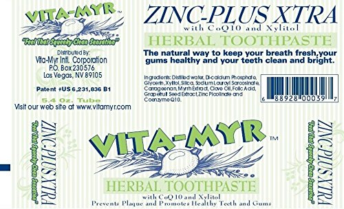 VITA-MYR Zinc-Plus Xtra Herbal Natural Toothpaste with CoQ10 and Xylitol 5.4 Oz