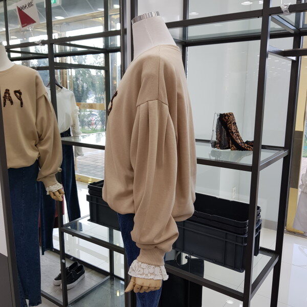 반에이크 티셔츠 입니다^^살짝 루즈한 맨투맨 티셔츠 입니다!!요즘 트렌디한 호피 레터링 포인트와 소녀스러운 레이스 포인트가 예쁜 디자이랍니다^^브랜드 표준 사이즈 FREE(가슴둘레88cm엉덩이둘레 94cm신장165cm)실측 사이즈가슴 단면 54cm총기장 57cm어깨단면 61cm팔길이 58cm실측 측정은 재는 위치에 따라 1-2cm차이가 날수 있으니 구매 참고 해주세요^^