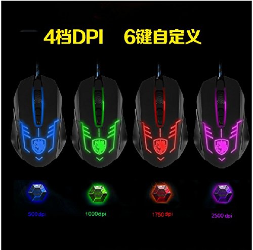 Specification:Left and right key operation force: 70 ± 15gfLeft and right key travel: 0.3 ± 0.1mm (switch only)Middle button efforts: 150 ± 30gfMiddle button Key travel: 0.3 ± 0.1mm (switch only)Wheel rotation strength: 70 ± 30gfCounterweight Weight: 23gDPI: 500DPI-Blue, 1000DPI-Green, 2000DPI-Red, 3500DPI-PurpleDPI shows the mouse resolution, DPI is higher, the mouse movement on the screen will be fasterThis large fission of fourth gear mouse DPI is: 500,1000,2000,2500, corresponding to blue, green, red and purple breathing lightKeys Quantity: 6pcsInterface: USB 2.0Operating Current:5V±0.5V---90MA(MAX)Sensors Refresh Rate: 2500 framescCable Length: 1.5meterWeight: about 150gCompatible with Windows XP, Vista, Windows 7, ME, 2000 and Mac OS...or latestUser for: The high-end players, gaming professional playersPackage include:1 X SADES Newest 3500DPI Optical LED 6 Buttons Gaming Mouse For Pro Gamers(without retail package)