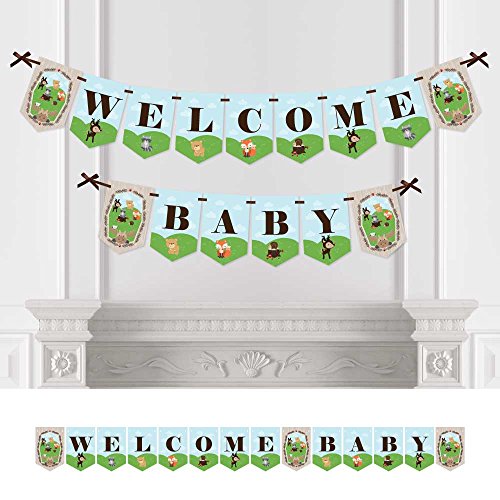 -. Feature : Woodland Creatures Baby Shower Bunting Banner is an impressive baby shower decoration for your forest friends party. Baby Shower Bunting Banner Decoration Kit INCLUDES Woodland Creatures WELCOME BABY letter pennants, Woodland themed pennants, satin ribbon and non-marking adhesives for hanging. / Baby Shower Bunting Banners SIZE: Each pennant measures 8.5 inches high x 5.5 inches wide. Ribbon measures 24 feet long and 3/8 inch wide." / BABY SHOWER DECORATIONS: A Woodland Creatures Baby Shower Bunting Banner is an easy way to decorate for your party and bring your woodland theme to life. Hang at the entrance of your baby shower, over the food table or candy buffet, at the gift table or behind the head table. / PREMIUM BABY SHOWER SUPPLIES: Woodland Creatures Welcome Baby Bunting Banner is professionally P.R.Inted on sturdy cardstock paper. Each pennant is individually inspected then carefully packaged by hand. Welcome Baby bunting banners require some easy assembly. Following the number sequence on the back of each pennant, simply string the included satin ribbon through the pennant slots. Create two rows by cutting the ribbon to you desired length or hang as one long banner. / MADE IN THE USA: Woodland Creatures - Baby Shower Bunting Banner is designed and manufactured at our Wisconsin facility using materials that are Made in the USA.