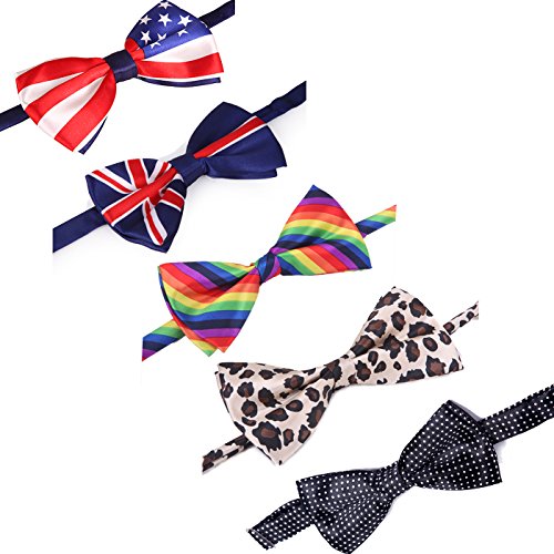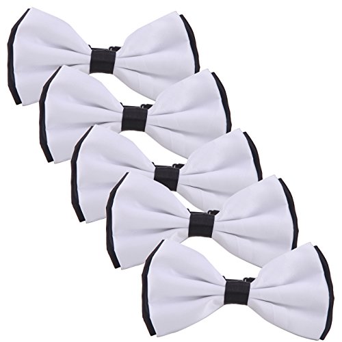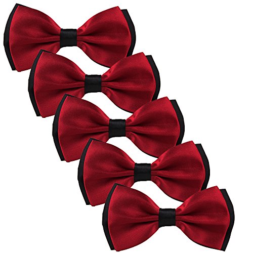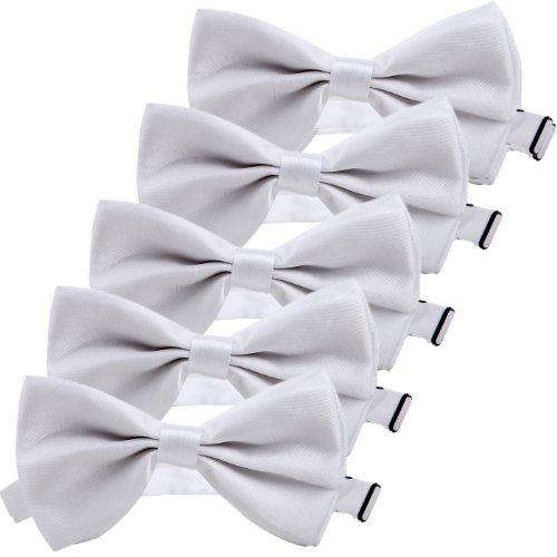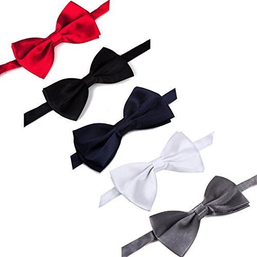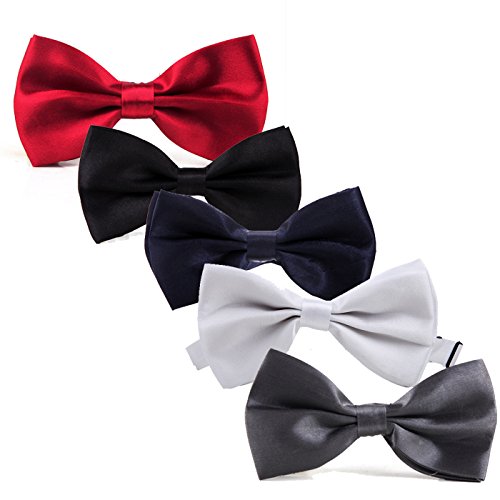 | HDE Men's Wedding Party 5-Pack of Solid Color Formal Adjustable Pre-Tied Tuxedo Bow Ties |
