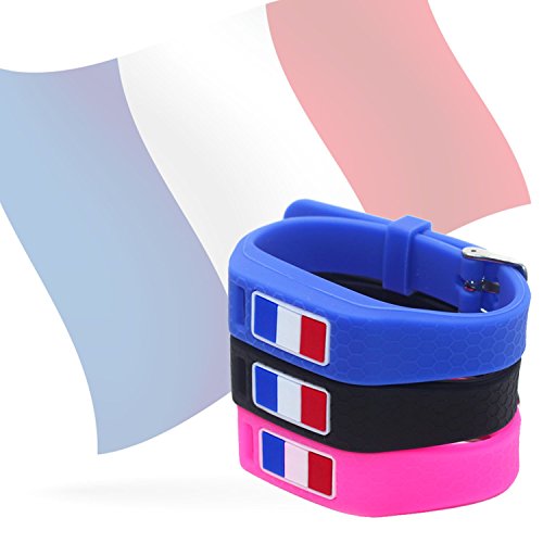 Hotodeal Replacement Bands for Fitbit Flex, Fashion Adjustable Silicone Sport Wristband with Chrome Clasp and Fastener Buckle, Prevent Tracker Falling Off, Comfortable, Pack of 3 (French Flag)