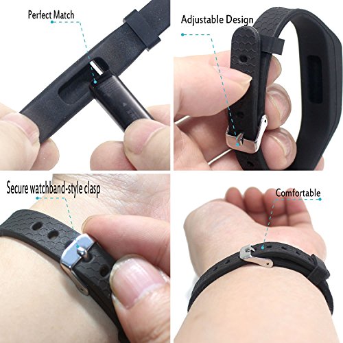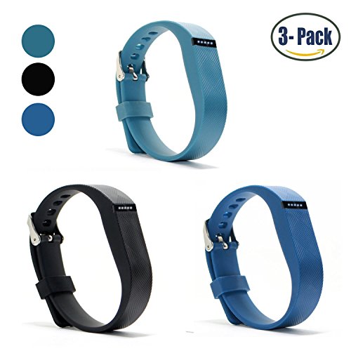 Hotodeal Replacement Bands for Fitbit Flex, Fashion Adjustable Silicone Sport Wristband with Chrome Clasp and Fastener Buckle, Prevent Tracker Falling Off, Comfortable, Pack of 3 (Black+Blue+Slate)