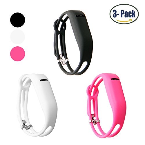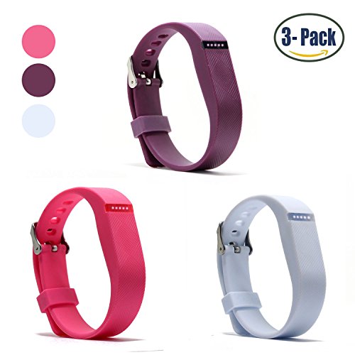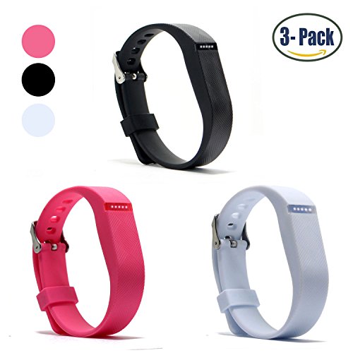 Hotodeal Replacement Bands for Fitbit Flex, Fashion Adjustable Silicone Sport Wristband with Chrome Clasp and Fastener Buckle, Prevent Tracker Falling Off, Comfortable, Pack of 3 (Black+Pink+White)