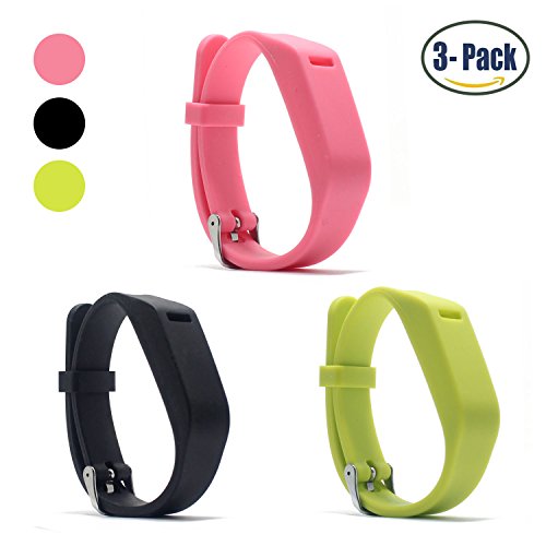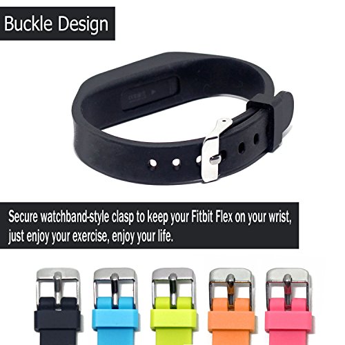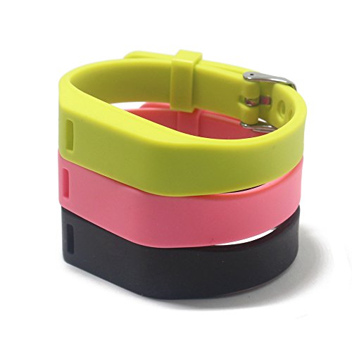 Hotodeal Replacement Bands for Fitbit Flex, Fashion Adjustable Silicone Sport Wristband with Chrome Clasp and Fastener Buckle, Prevent Tracker Falling Off, Comfortable, Pack of 3 (Black+Pink+Green)