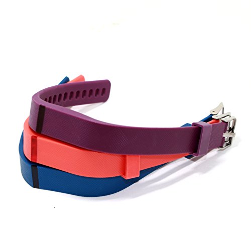 Hotodeal Replacement Bands for Fitbit Flex, Fashion Adjustable Silicone Sport Wristband with Chrome Clasp and Fastener Buckle, Prevent Tracker Falling Off, Comfortable, Pack of 3 (Purple+Blue+Orange)
