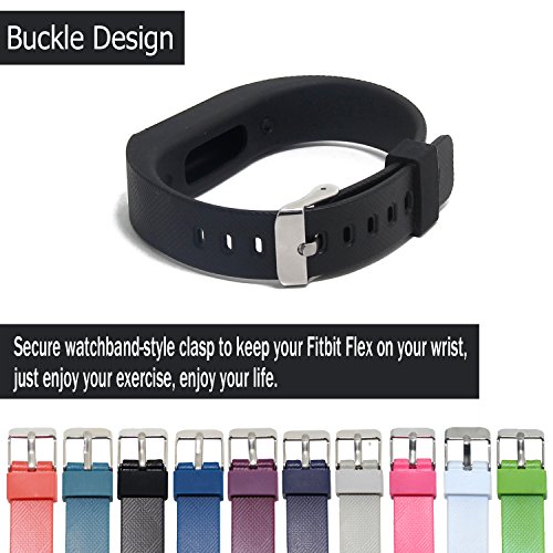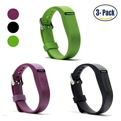 Hotodeal Replacement Bands for Fitbit Flex, Fashion Adjustable Silicone Sport Wristband with Chrome Clasp and Fastener Buckle, Prevent Tracker Falling Off, Comfortable, Pack of 3 (Black+Purple+Green)