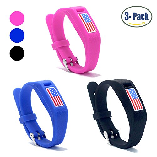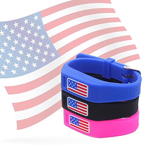 Hotodeal Replacement Bands for Fitbit Flex, Fashion Adjustable Silicone Sport Wristband with Chrome Clasp and Fastener Buckle, Prevent Tracker Falling Off, Comfortable, Pack of 3 (American Flag)