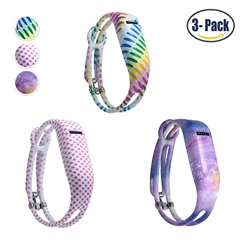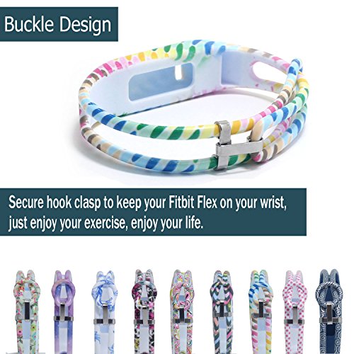 Hotodeal Replacement Bands for Fitbit Flex, Fashion Silicone Wristband Accessory, Colorful Band Design with Adjustable Metal Clasp, Prevent Tracker Falling Off, Cute Patterns, Comfortable, Pack of 3