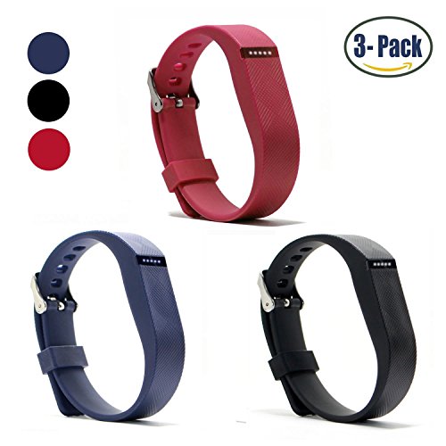 Hotodeal Replacement Bands for Fitbit Flex, Fashion Adjustable Silicone Sport Wristband with Chrome Clasp and Fastener Buckle, Prevent Tracker Falling Off, Comfortable, Pack of 3 (Black+Navy+Grey)