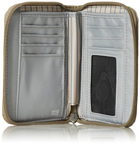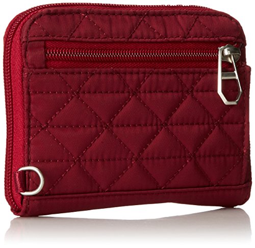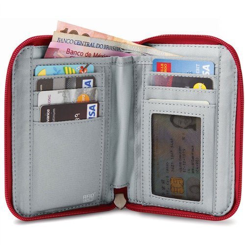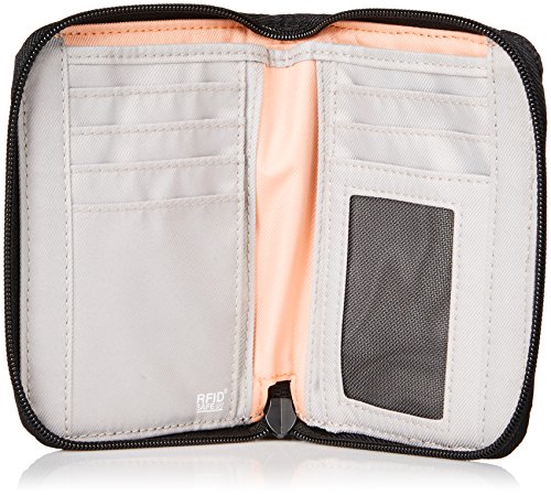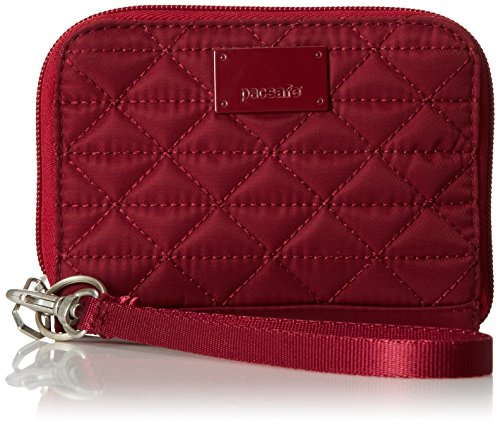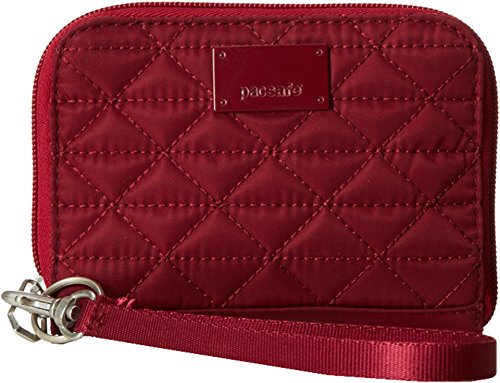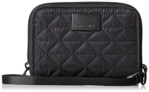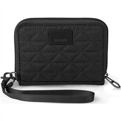 The RFIDsafe W100 anti-theft RFID blocking wallet is elegantly designed, with built-in organization and security features. This wallet is a woman’s best friend, helping provide protection from identity thieves, while keeping cash, cards, and travel documents organized. The zippered wallet is built with RFID blocking material that helps prevent your data (such as from e-passports, credit cards, and key cards) from falling into the wrong hands. It comes with a detachable wrist strap, while the main compartment features two note slots, seven card slots, and four sideway compartment slots. It measures at 4.3 x 5.9 x 0.6 inches (HxWxD) and weighs just four ounces. Pacsafe keeps travelers one step ahead of the game by keeping their gear secure from opportunistic thieves with a wide range of stylish adventure backpacks, leisure bags, urban bags, women’s bags, and camera bags, as well as luggage and travel accessories. 0 |