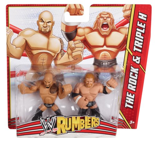 -. Binding : Toy -. Brand : Mattel -. EAN : 0746775187965 -. Feature : Bring home the officially licensed WWE action / The mightiest WWE Superstars have gone mini / Includes 2 mini figures grouped together to re-create key match-ups and rivalries / Features Superstar styling, 4 points of articulation and a mighty grip to hold accessories / Collect the entire Rumblers world to build your own battle -. Label : Mattel -. Manufacturer : Mattel -. Model : Y0638 -. MPN : Y0638 -. PackageQuantity : 1 -. PartNumber : Y0638 -. ProductGroup : Toy -. ProductTypeName : TOYS_AND_GAMES -. Publisher : Mattel -. Studio : Mattel -. Title : WWE Rumblers The Rock and Triple H Figure, 2-Pack -. UPC : 746775187965 -. Warranty : 1 year warranty against manufacturer defects
