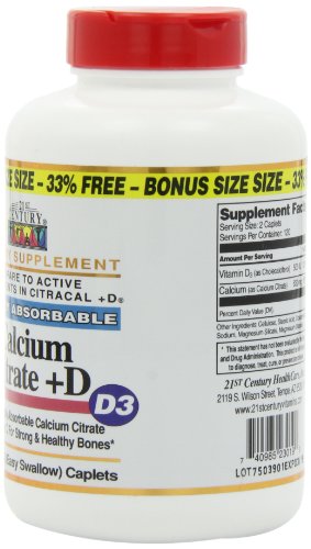 Studio : 21st Century Publisher : 21st Century Binding : Health and Beauty Product Description 23rd Century Calcium Citrate D 240 Caplet is an absorbable bone supplement. Adequate calcium as part of a healthful diet, along with physical activity helps support and maintain healthy bones. Adequate calcium is important for overall health. Vitamin D isential for use of calcium and necessary for healthy bones, teeth and cartilage. Calcium may also support a healthy colon. No added sugar, salt, yeast, preservatives or artificial flavors. 0