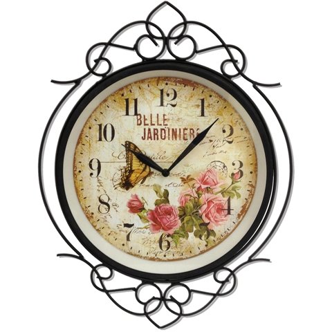 15-Inch Bella Jardiniere quartz analog indoor/outdoor wall clock. This clock has an all metal hand welded case and came be used inside and out.